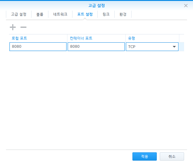 13. 포트 설정에서 8080 포트를 연결한다.
