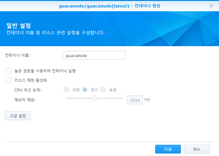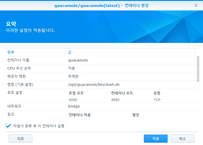 다음은 guacamole 컨테이너를 생성할 차례다.