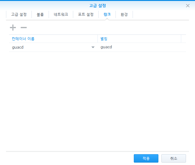 14. 링크에서 앞서 만든 guacd 컨테이너를 연결해준다. 별칭은 반드시 guacd