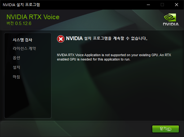 실행하면 RTX가 아니라 GTX라서 설치가 안 된다. 만약 RTX 사용자라면 그냥 설치해서 잘 쓰면 된다.
