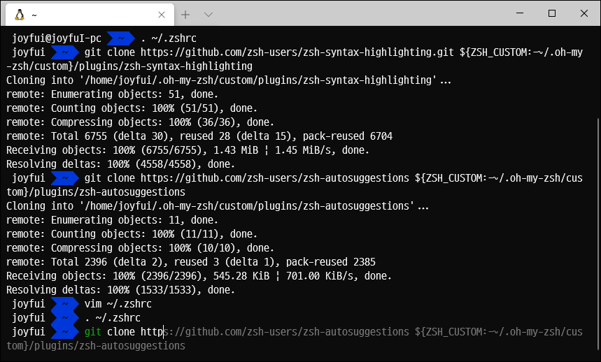 나는 일단 syntax-highlighting과 autosuggestions을 설치했다.