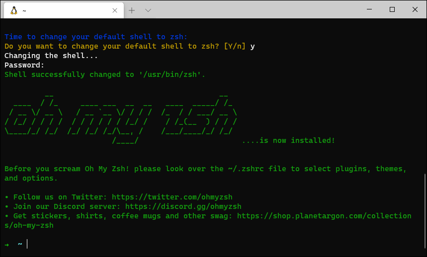 sh -c "$(curl -fsSL https://raw.githubusercontent.com/ohmyzsh/ohmyzsh/master/tools/install.sh)"
