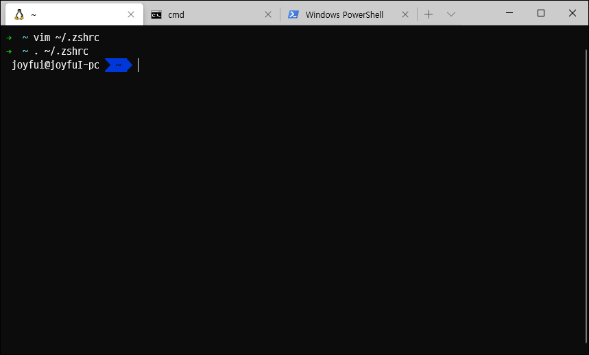 다시 .zshrc 파일을 열고 맨 아랫줄에 위 내용을 추가한다.