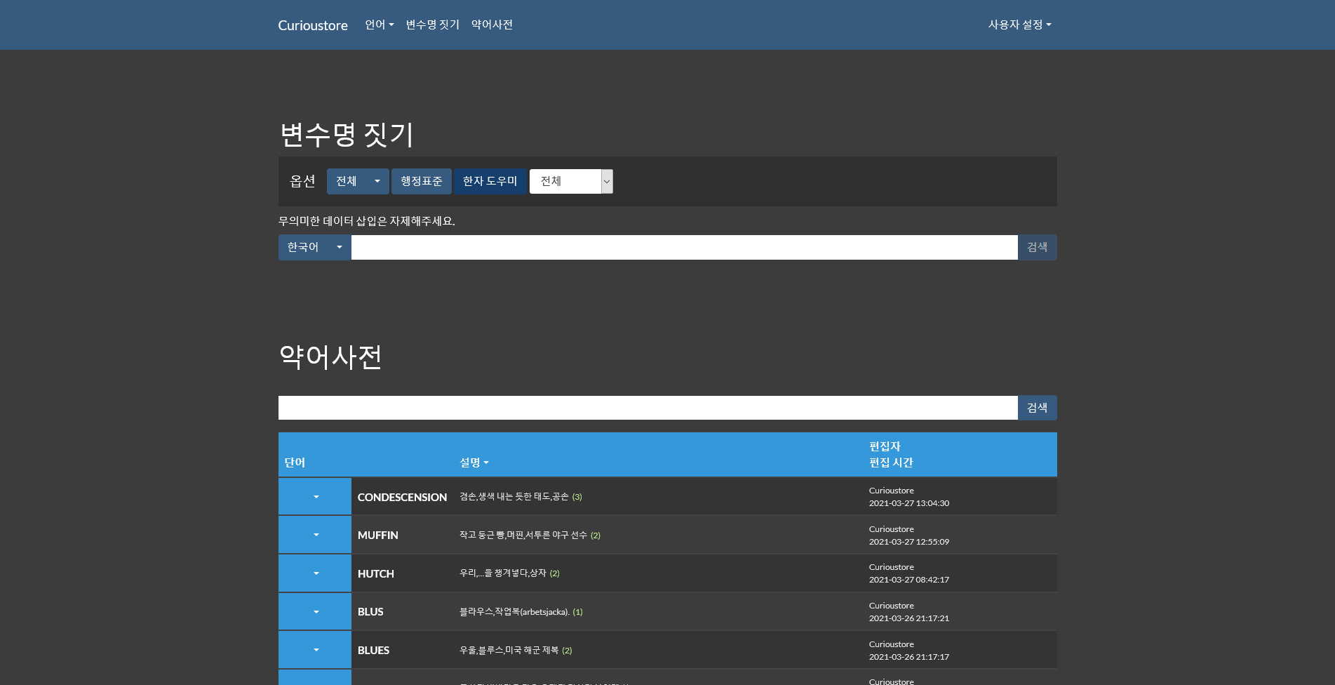 약어로 된 변수명도 같이 추천해줘서 유용하다. 이제 번역기 대신에 이 사이트를 열어놔도 될 듯...?