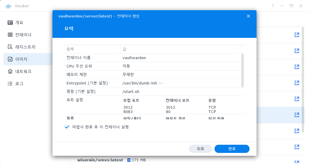 그러다가 심심해서 NAS에 비트워든을 돌려보기로 했다. (유료 결제는 잘 쓰고 있으니 기부한 셈...?)