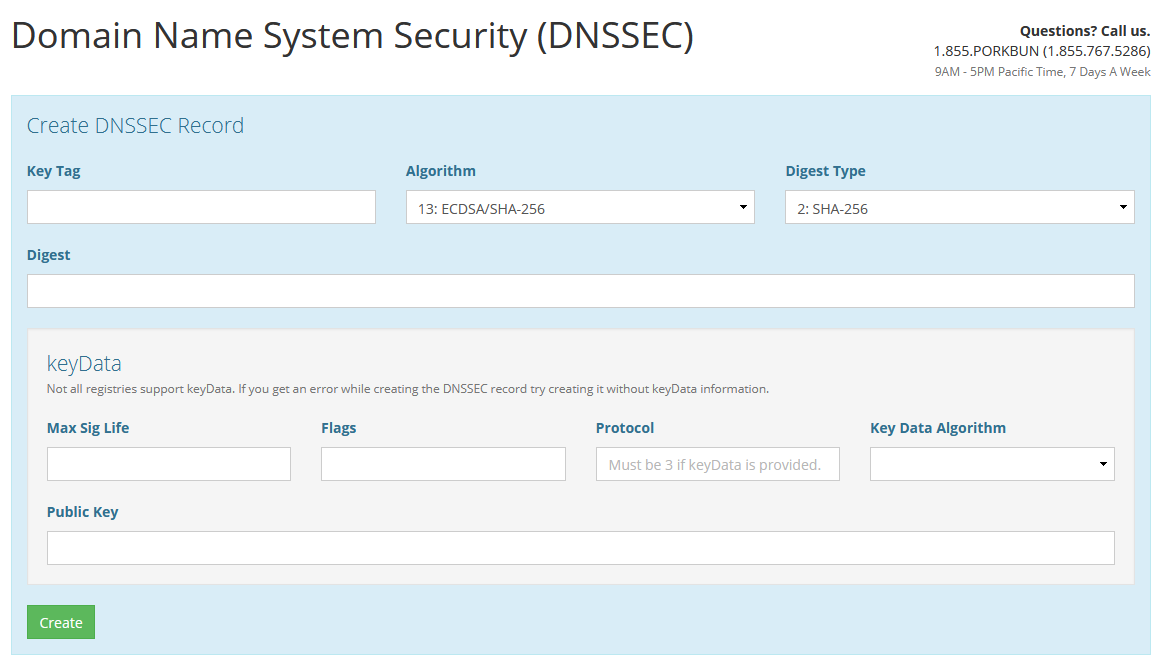 아무튼 porkbun에서 10년 치를 결제한 뒤 네임 서버를 Cloudflare로 바꾸고 설정을 쭉 둘러봤는데 DNSSEC라는 게 있었다. 돈이 더 드는 것도 아니고 보안에 좋다는 데 굳이 사용하지 않을 이유가 없어서 설정하려는데 클라우드플레어 쪽 매뉴얼에 포크번의 대한 내용이 없다. 뭐 적당히 칸을 채워도 추가가 안 되길래 찾아봤더니 해결법은 간단했다.