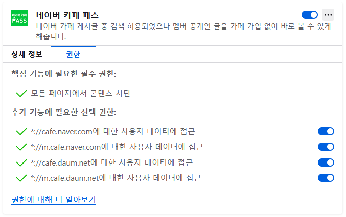 Manifest V3로 이전을 완료하고 다음 카페 지원도 추가한 네이버 카페 패스 확장은 아래 링크에서 받을 수 있다. (기존과 링크 동일)