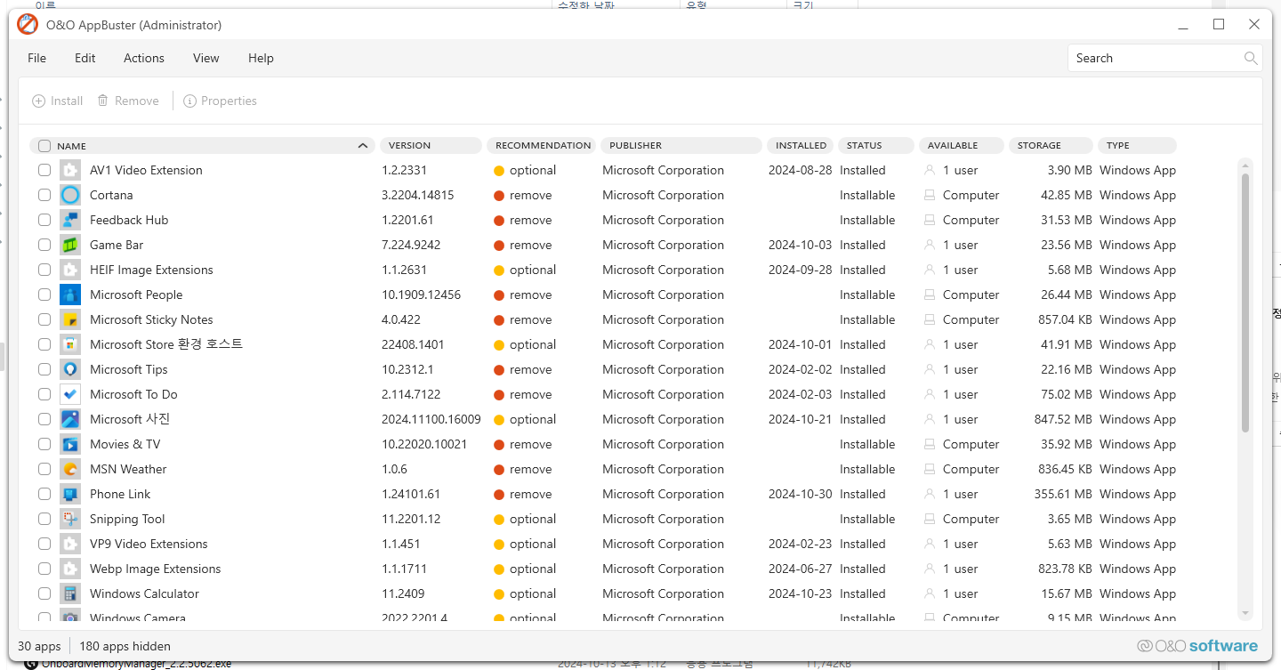 윈도우에 설치된 앱들을 쉽게 삭제할 수 있는 프로그램이다. 스토어에서 설치한 프로그램들은 제어판에선 보이지 않고 설정만 볼 수 있는데 여기선 스토어 앱이랑 아닌 거랑 섞여서 나오다 보니까 목록을 쭉 둘러보기 불편했다. 이 프로그램을 사용하면 스토어 앱만 따로 볼 수 있고 앱 제거도 할 수 있다.