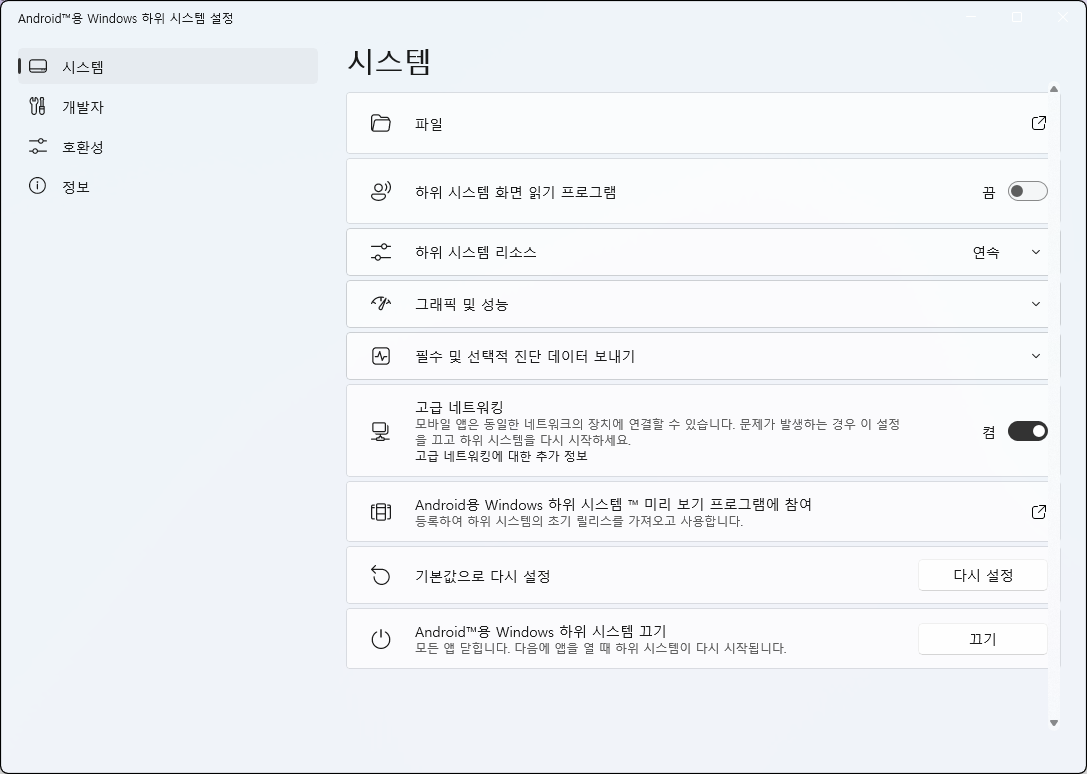 나중에 WSA를 업데이트하고 싶으면 위의 과정을 다시 반복하면 된다. 툴이 알아서 기존 데이터를 보존한 채로 새 버전을 설치한다.