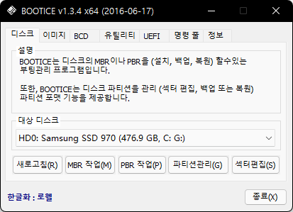 bcd 수정 프로그램이다. bcd는 윈도우에서 부팅 관련 정보가 들어 있는 파일로 이게 잘못되면 부팅이 안 된다.
