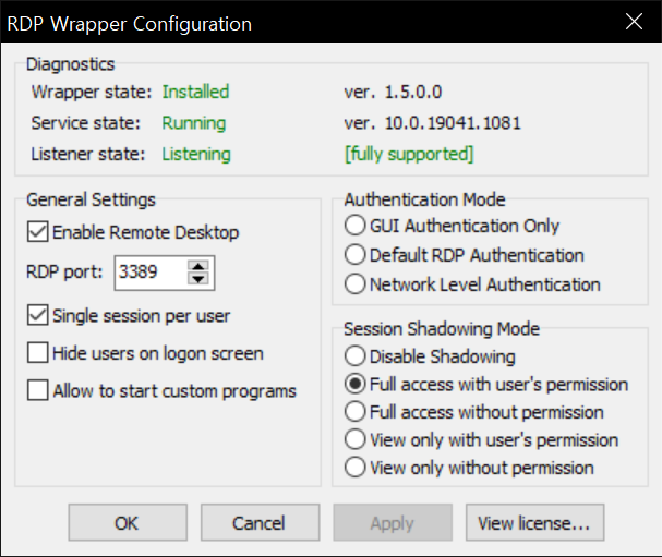 RDP Wrapper라는 프로그램인데 원격 데스크톱의 몇 가지 기능을 활성화해준다. 이걸로 홈 버전에서도 원격 데스크톱을 사용할 수 있다. 다만, 오래전에 업데이트가 끊겨서 최신 윈도우 10에서는 동작하지 않는 문제가 있는데 이 역시 외국 능력자들 덕분에 해결 방법이 있다.